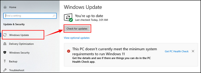 Debe actualizar Windows a la última versión con parches de seguridad. Si tiene una actualización de Windows pendiente, actualícela de inmediato. Todos los controladores también se actualizarán cuando realice una actualización de Windows.
