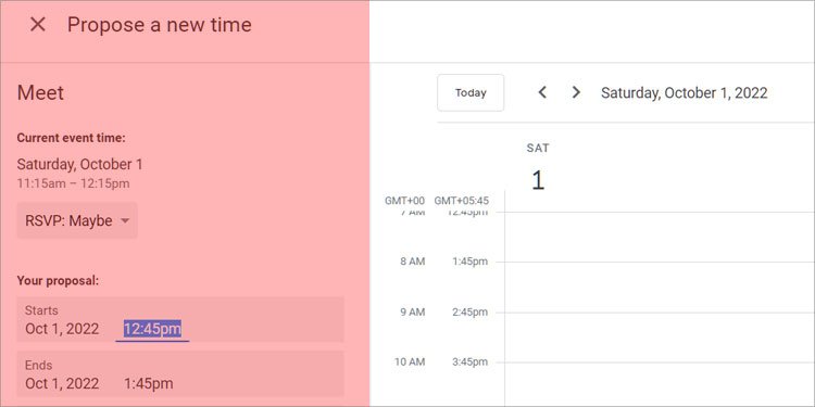 A veces, nuestras apretadas agendas no nos permiten asistir a reuniones en línea. Por lo general, si el organizador le envía la solicitud del evento por correo electrónico, puede sugerir una nueva hora a partir de ese correo electrónico. Pero, si el organizador no te envió un correo electrónico, puedes proponer una nueva hora en Google Calendar.