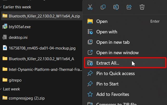 Vaya al sitio web de su fabricante, busque controladores para su modelo específico, seleccione la versión de Windows y descargue el controlador. Extraiga si está en una carpeta zip y mueva la carpeta del controlador de Bluetooth extraída a una ubicación conocida.