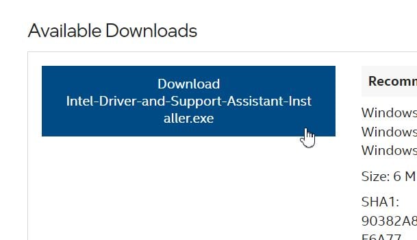 Descargue e instale Intel Driver Support Assistant siguiendo las instrucciones en pantalla.