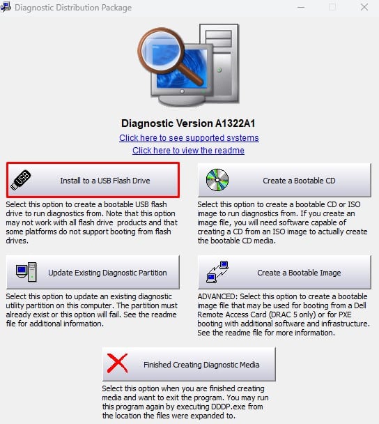Para crear un USB de arranque que contenga un archivo de actualización del BIOS, necesita la aplicación Dell Diagnostic Distribution Package (DDDP) oficial de Dell. p> Descargue DDDP del sitio web oficial de descargas de Dell. Ejecute el archivo descargado para iniciar la instalación de la aplicación.