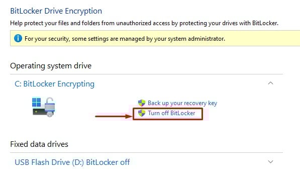 Seleccione Desactivar BitLocker en todas sus unidades.