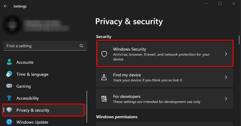 Presione la tecla Windows + I para abrir Configuración. Vaya a Privacidad y seguridad > Seguridad de Windows.
