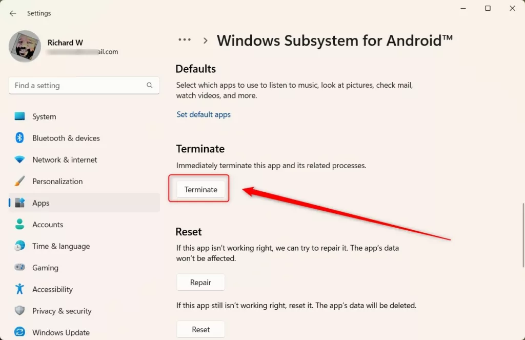 A continuación se muestran varias formas de reiniciar los procesos de WSA en Windows 11.