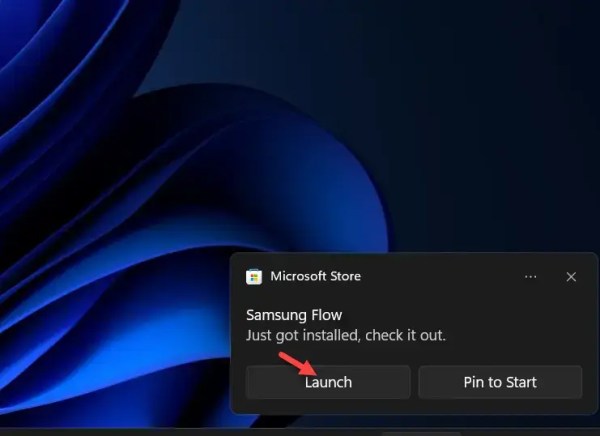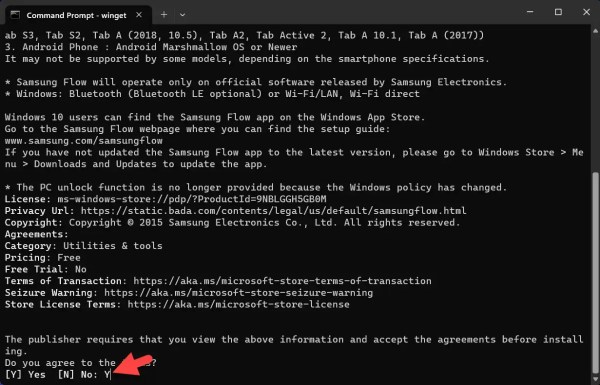 Siinä kaikki. Näin voit hankkia ja asentaa Samsung Flow-sovelluksen Windows 11-tietokoneeseen tai kannettavaan tietokoneeseen ilman Microsoft Storea. Sinun tarvitsee vain suorittaa yksinkertainen komento komentokehotteessa.