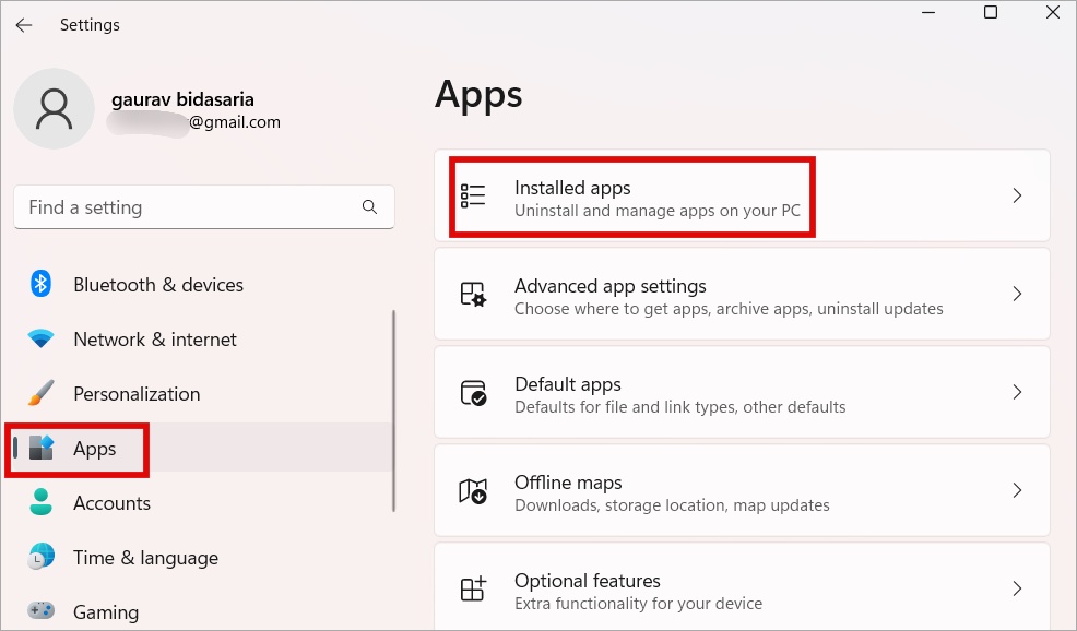 2. Siirry vasemman sivupalkin kohtaan Sovellukset ja valitse oikealta Asennetut sovellukset.