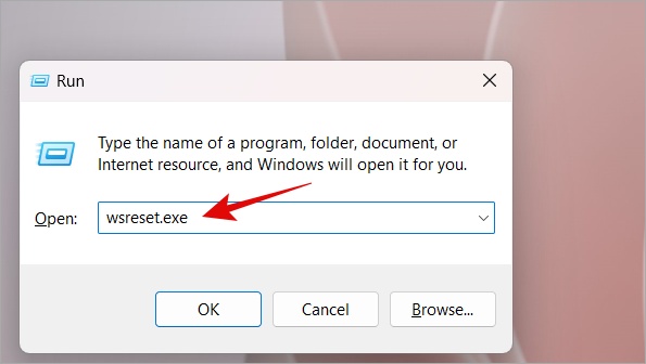 1. Paina Windows+R avataksesi Suorita-kehotteen. Kirjoita wsreset.exe ja paina Enter.