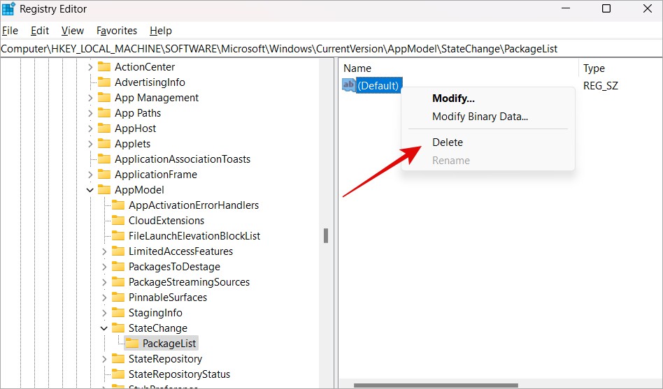Computer\HKEY_LOCAL_MACHINE\SOFTWARE\Microsoft\Windows\CurrentVersion\AppModel\StateChange\PackageList