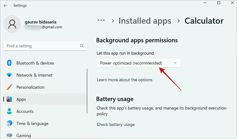 3. Valitse Virta optimoitu vaihtoehto avattavasta valikosta.