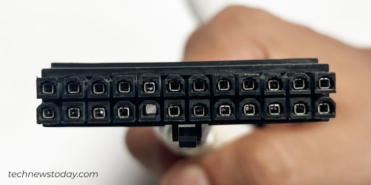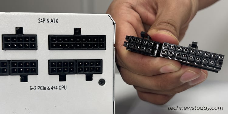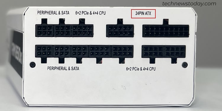 Pullavirtalähteen puolella näet” 24PIN ATX“-tarra ATX-virtaliittimen liittämiseksi. Virtalähteen ATX-portissa ei kuitenkaan aina välttämättä ole 24-nastaista asetusta.