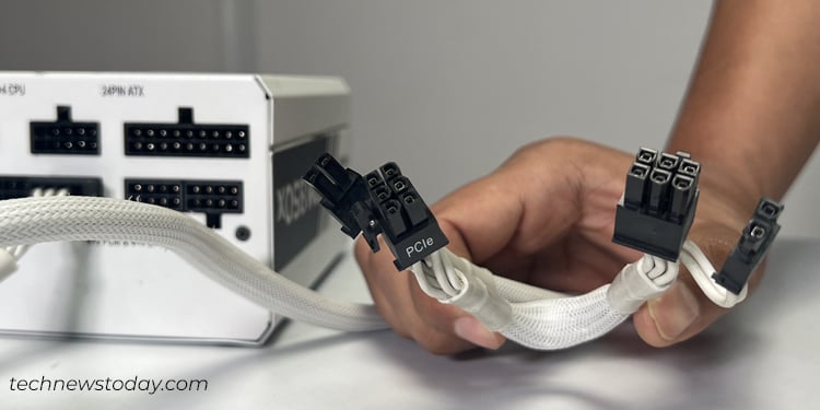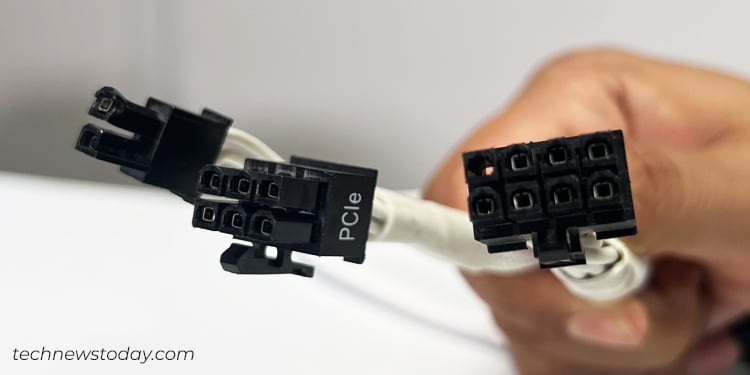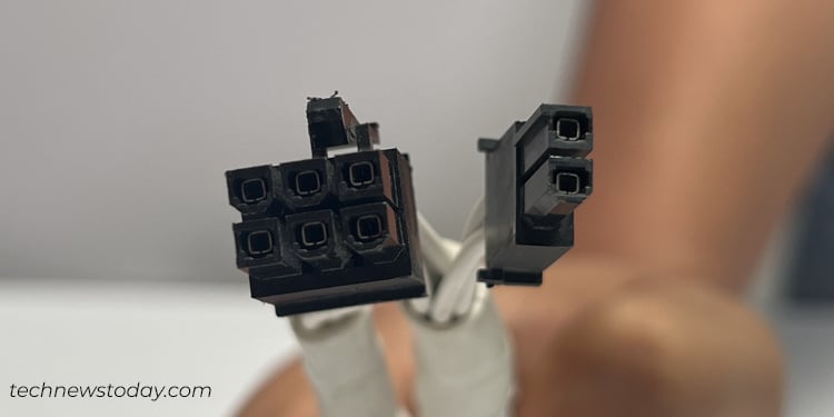 Vaikka (6+2) nastainen PCIe-liitin riittää syöttämään virtaa keskitason GPU:ille, tarvitset 12 nastaa tai 16 nastaa virtaa kuluttavien GPU:iden syöttämiseen. Löydät esimerkiksi kaksi 8-nastaista porttia (yhteensä 16) GeForce GTX 1080 Ti-grafiikkasuorittimessa.