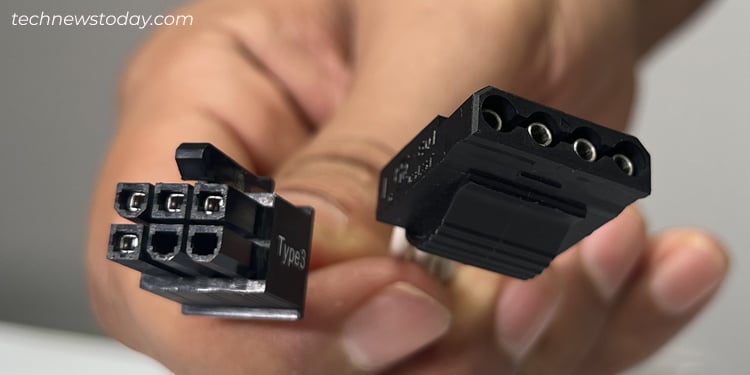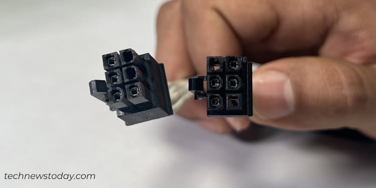 PSU-puolella nämä liittimet ovat melko samanlaisia kuin SATA-liitännät, ja niissä on 6 nastaa .