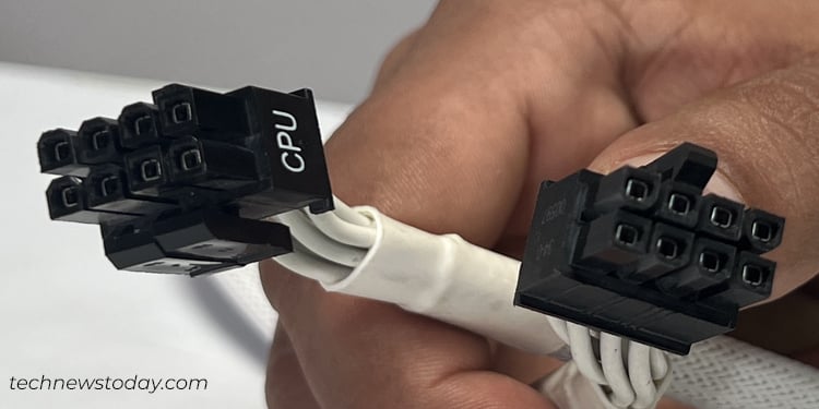 PSU-puolella on erillinen portti, jossa on 8 nastaa CPU-liittimen kytkemiseksi. Ne on yleensä merkitty”CPU“, jotta voit muodostaa yhteyden vaivattomasti.