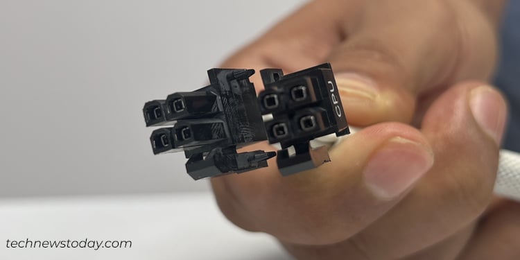 Tulee pin-kokoonpano, suorittimen virtaliittimessä on joko 4-nastainen, 8-nastainen, (8+4)-nasta tai >(8+8) pin-asennus. Kaiken lisäksi 8-nastainen asennus on nykyään laajalti käytössä ja sitä pidetään vakiona. 8-nastainen kokoonpano on irrotettavissa kahteen lohkoon (4+4), kuten näet CORSAIR RM850X PSU-liittimistäni.