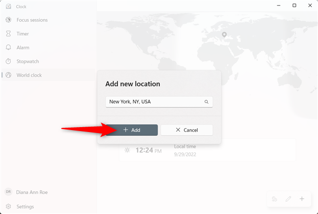 Lisää uusi kaupunki Windowsin maailmankelloon