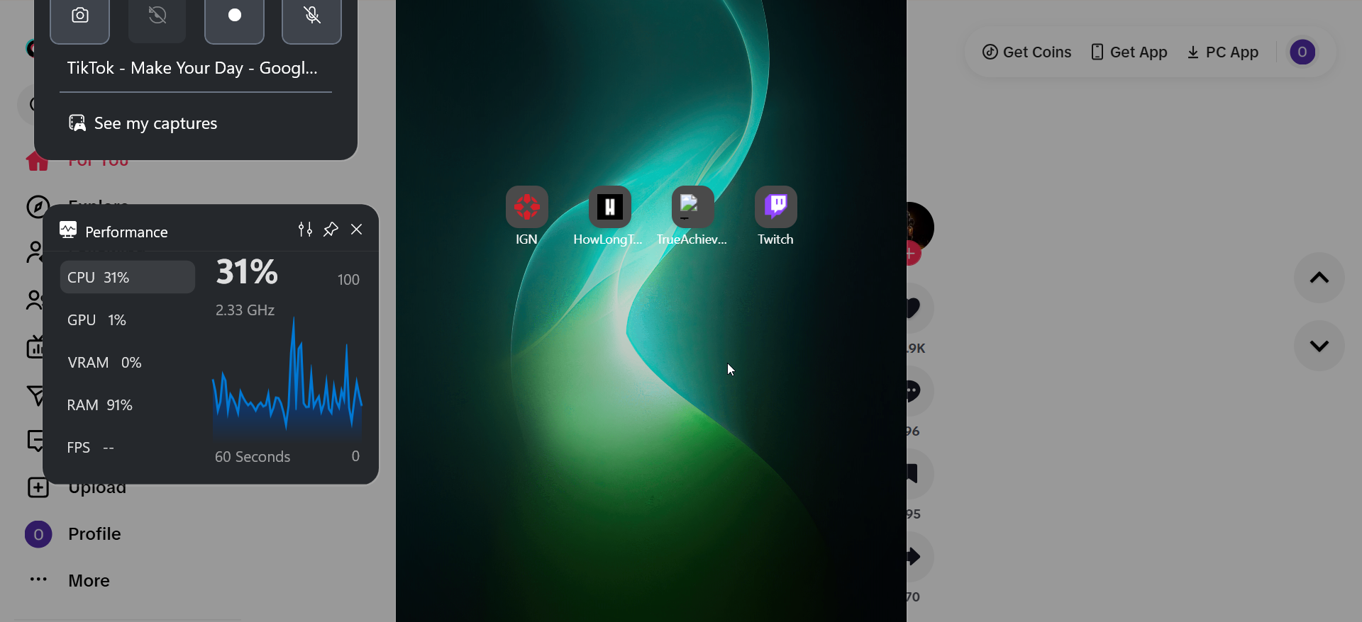 Windowsissa paina Win + G avataksesi Xbox-pelipalkin ja aloita tallennus. Jos käytät Macbookia, paina Shift + Command + 5 ja valitse tallennusalue. Nyt voit toistaa TikTok-videon ja lopettaa tallennuksen, kun se on valmis.