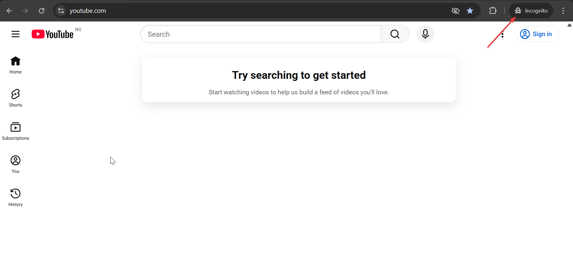 3) Käytä YouTube Incognitoa pöytäkoneella tai kannettavalla tietokoneella