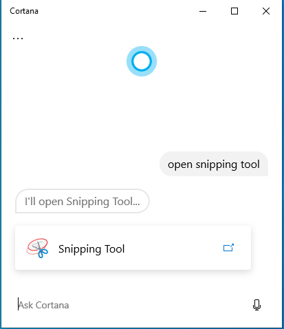 Demandez à Cortana d’ouvrir Snipping Tool