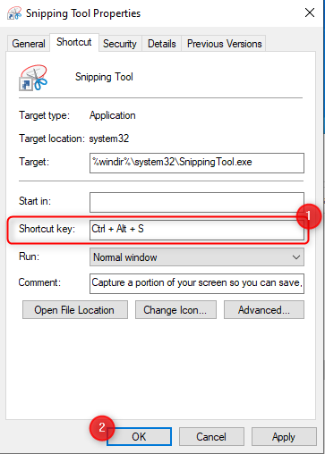 Créez un raccourci clavier pour ouvrir l’outil Snipping dans Windows 10