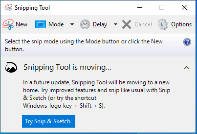 La prochaine fois que vous appuyez sur les touches choisies, l’application Snipping Tool s’ouvre dans Windows 10, vous informant que l’application sera déplacée vers une nouvelle maison, comme expliqué précédemment dans cet article.