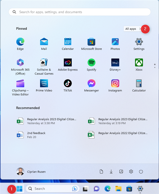 La procédure de Windows 11 est plus longue : ouvrez le menu Démarrer et cliquez ou appuyez sur Toutes les applications.