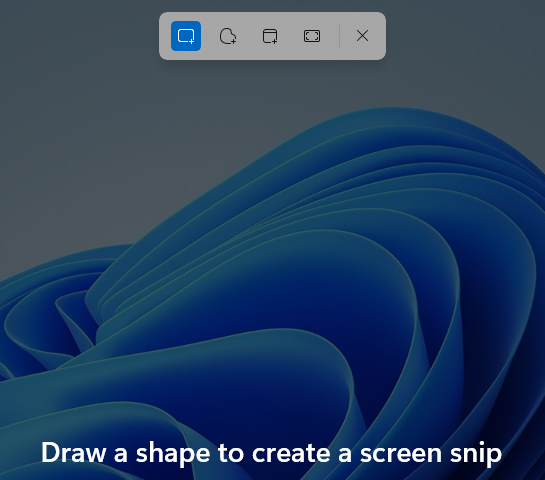Lorsque vous appuyez simultanément sur ces touches dans Windows 11, l’écran s’assombrit et vous voyez cinq icônes en haut de l’écran, à côté de l’encouragement à”Dessiner une forme pour créer une capture d’écran.”
