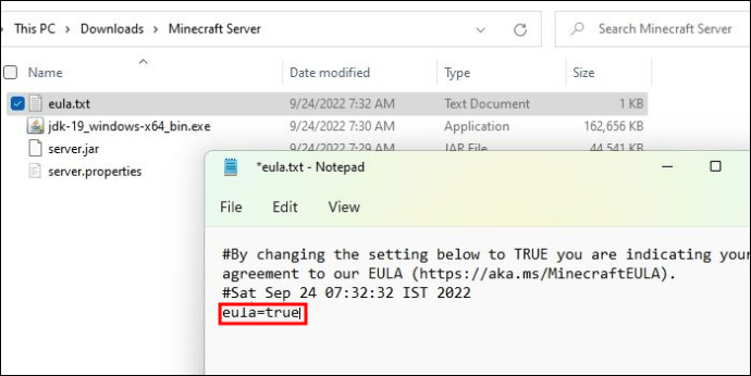 Ouvrez”eula.txt”dans le dossier du serveur.