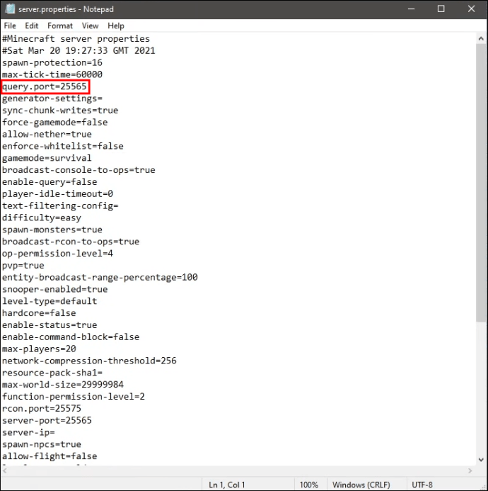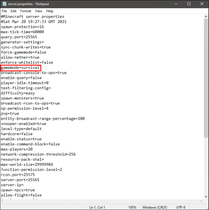 Ouvrez”server.properties”en cliquant dessus avec le bouton droit de la souris et en utilisant le Bloc-notes.