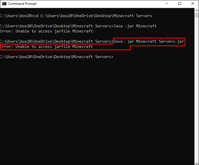 Tapez”Java-jar filename.jar”et appuyez sur Entrée. Ne paniquez pas si le chargement échoue.