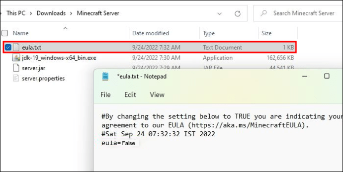 Ouvrez”eula.txt”dans le dossier du serveur.