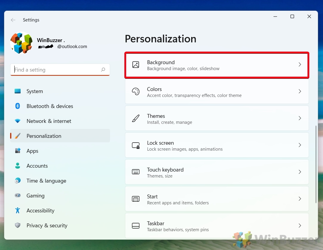 Cliquez sur”Arrière-plan”dans”Paramètres Windows-Personnalisation”
