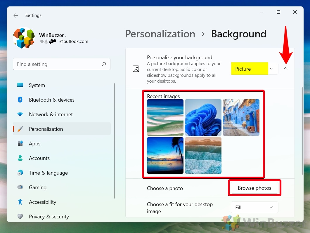 Cliquez sur”Parcourir les photos”après avoir sélectionné”Image”