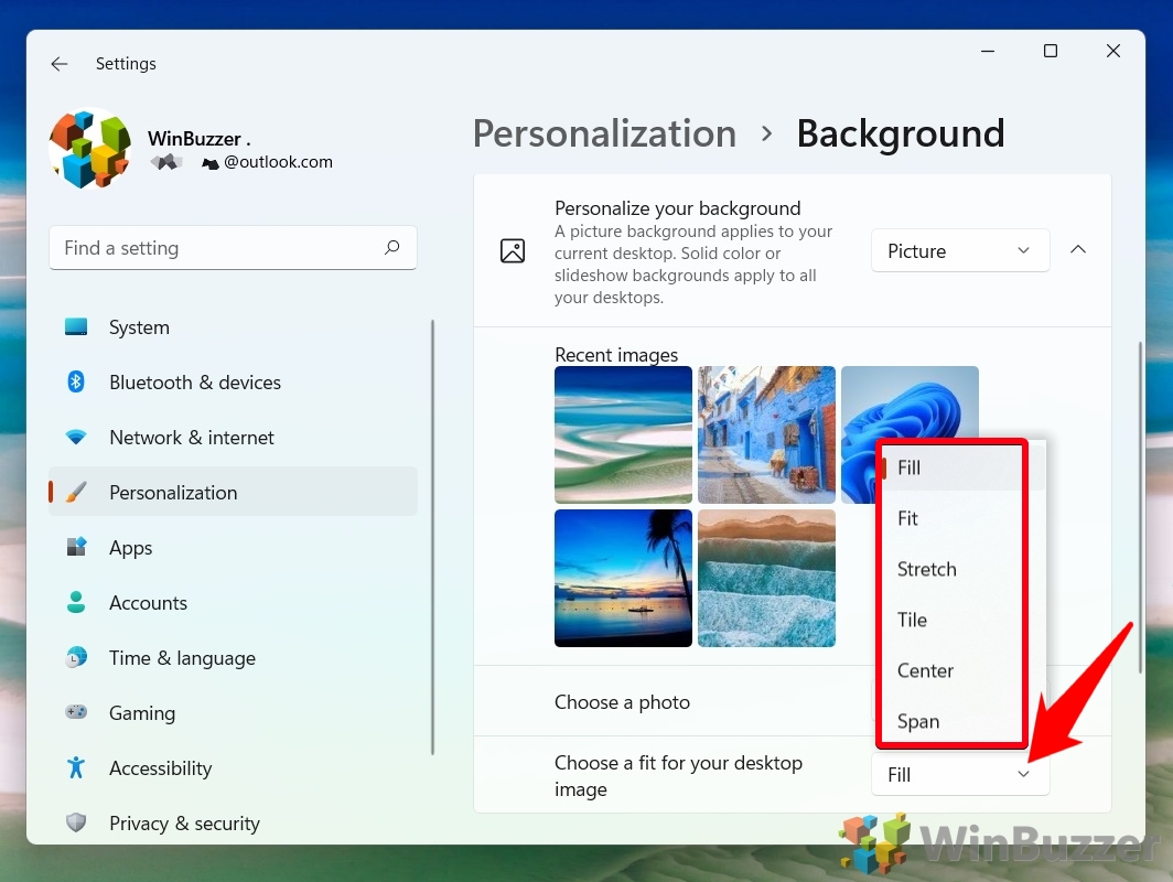 Cliquez sur”Choisir une image adaptée à votre ordinateur de bureau”et sélectionnez la manière dont l’image doit être utilisée