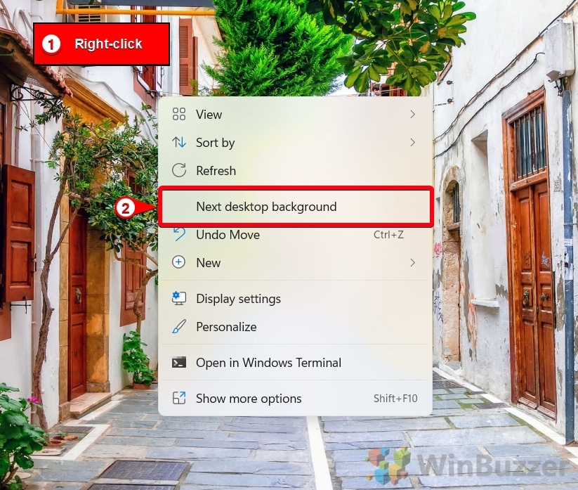 Pour ce faire, cliquez avec le bouton droit sur le bureau Windows et sélectionnez”Fond d’écran suivant”dans le menu contextuel.