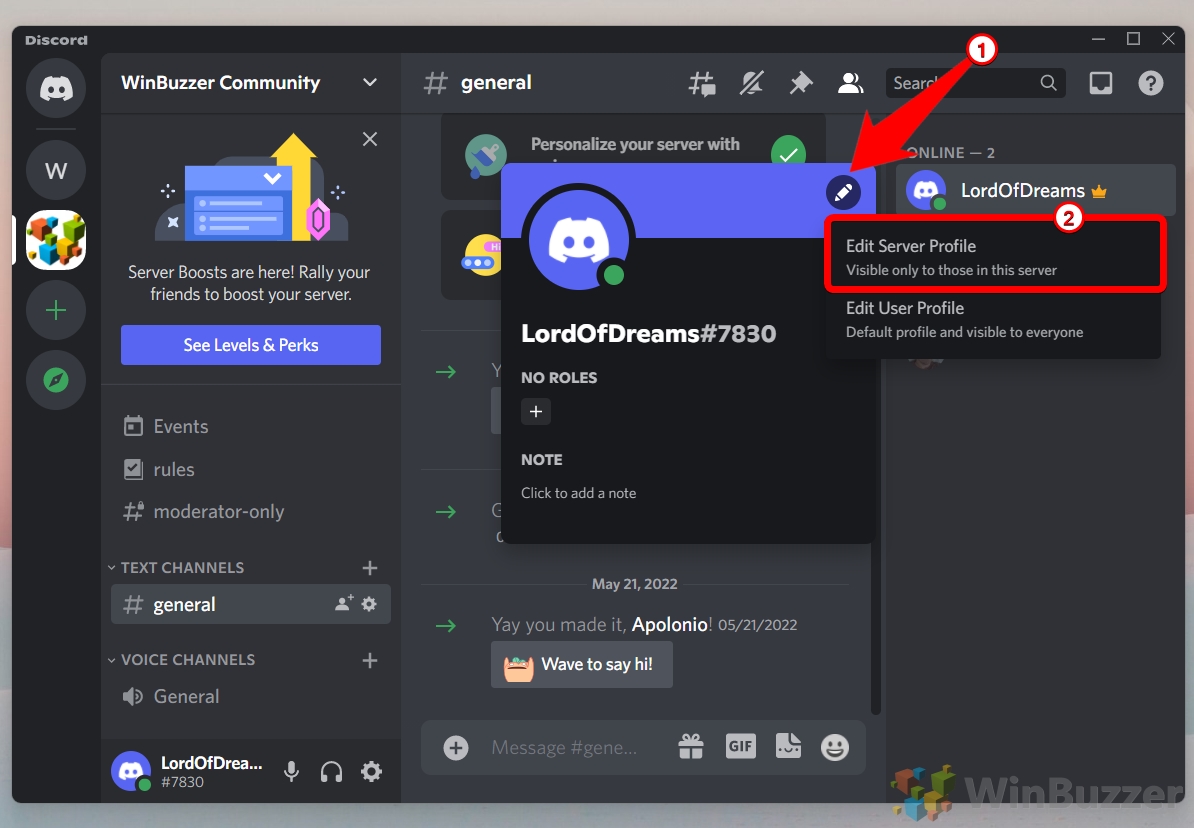Appuyez sur le bouton du stylet sur votre carte de profil Discord et puis”Modifier le profil du serveur”