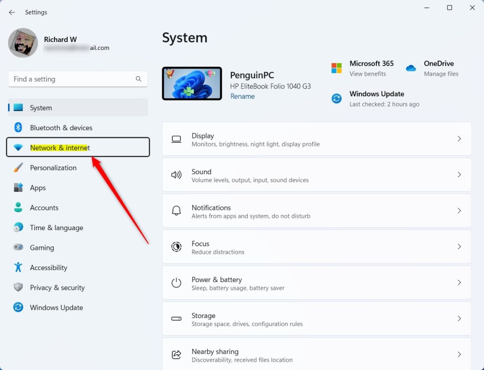 Lorsque l’application Paramètres s’ouvre, cliquez sur Réseau et Internet sur la gauche.