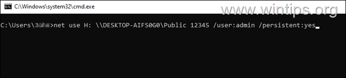 net use H: \\DESKTOP-AIFS0G0\Public 12345/user:admin/persistent:yes