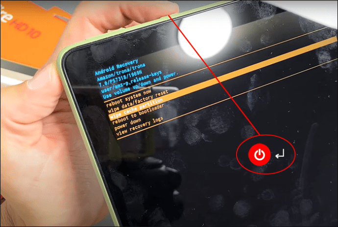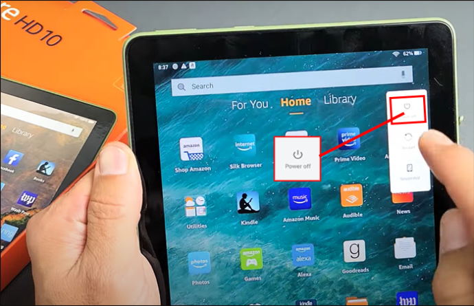 Une fois la tablette éteinte, appuyez sur le bouton d’alimentation et ne le relâchez que lorsque vous voyez le logo Amazon.