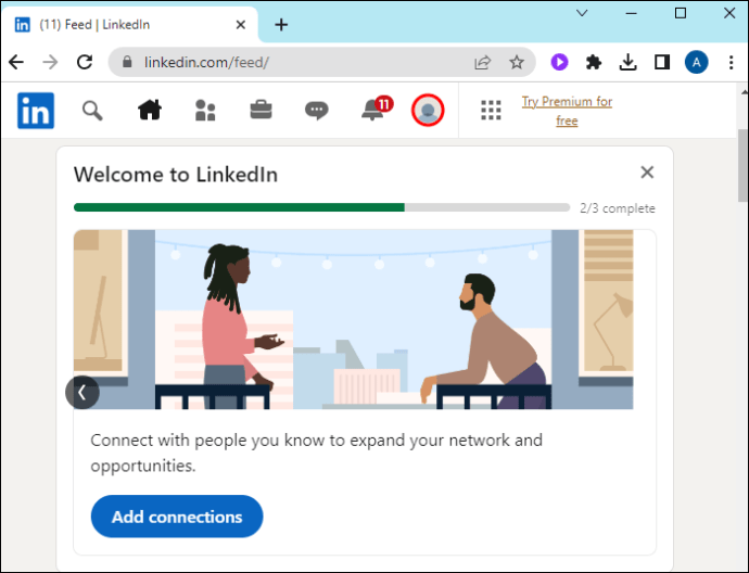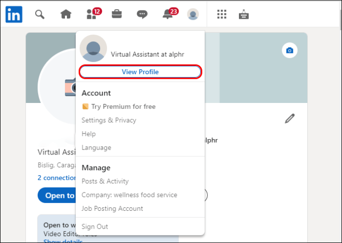 Connectez-vous à votre compte LinkedIn et accédez au coin supérieur droit.Appuyez sur « Moi » et sélectionnez « Afficher le profil » dans le menu déroulant. Cela ouvre votre page de profil.