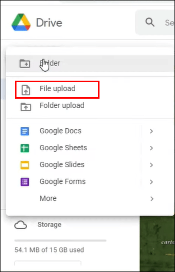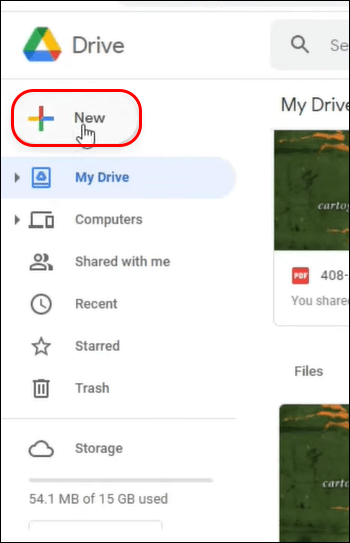 Accédez à votre compte Google Drive ou inscrivez-vous si vous n’en avez pas.Lorsque vous vous connectez, téléchargez votre certificat PDF depuis votre appareil. Accédez à la barre latérale gauche et sélectionnez « Nouveau ».