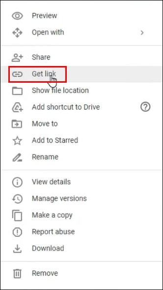 Cliquez avec le bouton droit sur le certificat et sélectionnez « Obtenir le lien ». Une fenêtre pop-up s’ouvre, à partir de laquelle vous pouvez copier votre lien.Avant de copier le lien, appuyez sur le menu déroulant à côté de « Restreint » et choisissez « Toute personne disposant du lien » pour donner toute personne consultant votre profil accède à votre certificat.