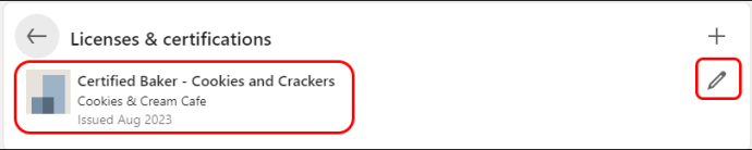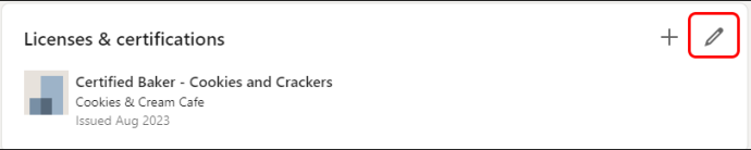 Ouvrez votre profil LinkedIn et faites défiler jusqu’à la section « Licences et certifications ».Appuyez sur l’icône « Crayon » à droite pour activer mode d’édition pour tous les certificats.