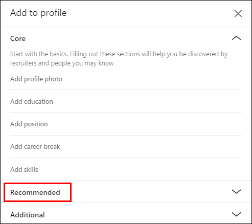 Faites défiler jusqu’à « Licences et certifications ». Si vous n’avez jamais utilisé la section auparavant, elle pourrait ne pas apparaître sur votre profil. Allez en haut de la page. sous votre titre et appuyez sur le bouton « Ajouter une section professionnelle ».