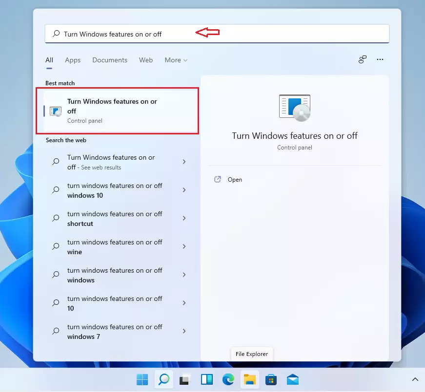 Commencez par cliquer sur Démarrer, puis tapez « Activer ou désactiver des fonctionnalités Windows » dans la barre de recherche. Sélectionnez le résultat qui apparaît pour ouvrir le volet des fonctionnalités du Panneau de configuration Windows.