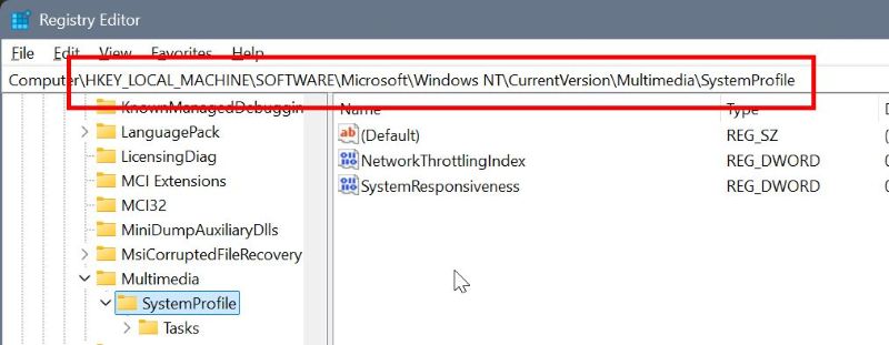 HKEY_LOCAL_MACHINE\SOFTWARE\Microsoft\Windows NT\CurrentVersion\Multimedia\SystemProfile