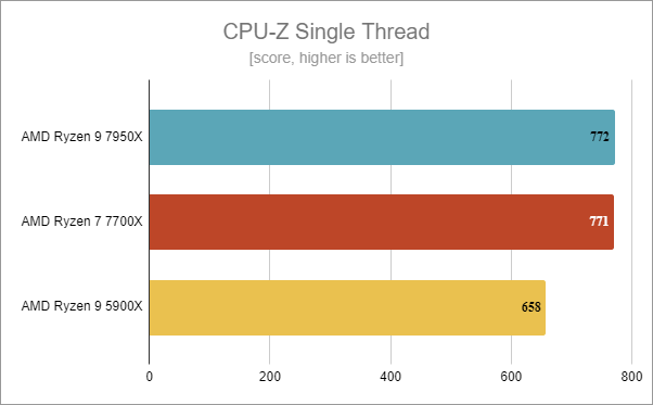 AMD Ryzen 7 7700X : résultats du benchmark CPU-Z Single Thread