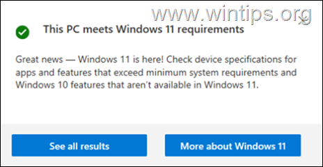 2. Ensuite, si votre ordinateur répond aux exigences de Windows 11, suivez les instructions de ce didacticiel pour mettre à niveau votre système Windows 10 vers Windows 11 ou pour effectuer une nouvelle installation de Windows 11.