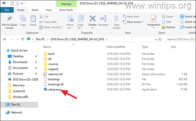 1. Double-cliquez sur le fichier ISO Windows 10 LTSC que vous avez téléchargé, puis double-cliquez sur setup.exe.