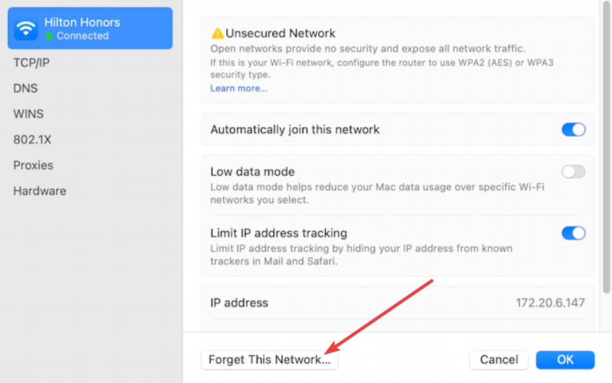 Que faire si la page de connexion n’apparaît pas : ouvrez un autre navigateur ou videz le cache de votre navigateur actuel, saisissez manuellement une URL (comme http://neverssl.com) pour forcer l’apparition du portail et désactivez temporairement les services VPN, car ils pourraient bloquer la page de connexion. Reconnectez-vous au WiFi Hilton en cas de panne : oubliez le réseau Hilton dans les paramètres WiFi de votre appareil et reconnectez-vous-y. Vous pouvez également redémarrer votre appareil pour réinitialiser la connexion réseau. Si le réseau reste instable, contactez la réception pour obtenir de l’aide ou vérifiez toute panne de service. Vitesse Internet lente : envisagez de passer au service Wi-Fi premium pour des vitesses plus rapides. Assurez-vous qu’aucun autre appareil ne surcharge le réseau en connectant trop d’appareils à la fois. Dépannage des problèmes VPN avec Hilton WiFi : les utilisateurs VPN peuvent rencontrer des problèmes de connectivité avec Hilton WiFi. Déconnectez temporairement votre VPN et essayez de vous reconnecter. Si vous devez utiliser un VPN, essayez d’abord de vous connecter au réseau, puis reconnectez votre VPN après vous être connecté.