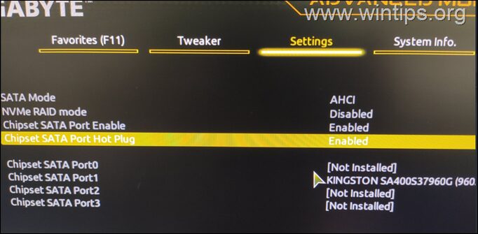 2. Dans le BIOS, essayez de localiser les paramètres de configuration SATA, puis voyez s’il existe un paramètre nommé”Hot Plug“ou”Hot Swap“.